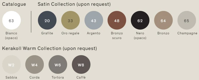 | Boja | Bijela, Bronze, Coffe, Grafit, Mat crna, Sand, Srebrna, 33 Royal Gold, 48 Dark Bronze, 65 Champagne, W4 Rope Color, W6 Dove-gray |